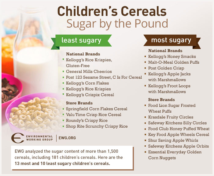 Some of these cereals contain more sugar than junk food itself and should not be considered as a part of a healthy eating regime. After a sugary start, your child’s energy levels will quickly surge and then plummet. These sugar packed cereals will cause a spike in blood sugar which results in a spike in energy (aka hyper, sugar high, crazy), following a quick decrease in energy shortly after (crash). Here is a list of the most sugar packed cereals: